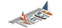 Well-maintained wet slips with convenient access for boats of various sizes, featuring water, power hook-ups, and more.